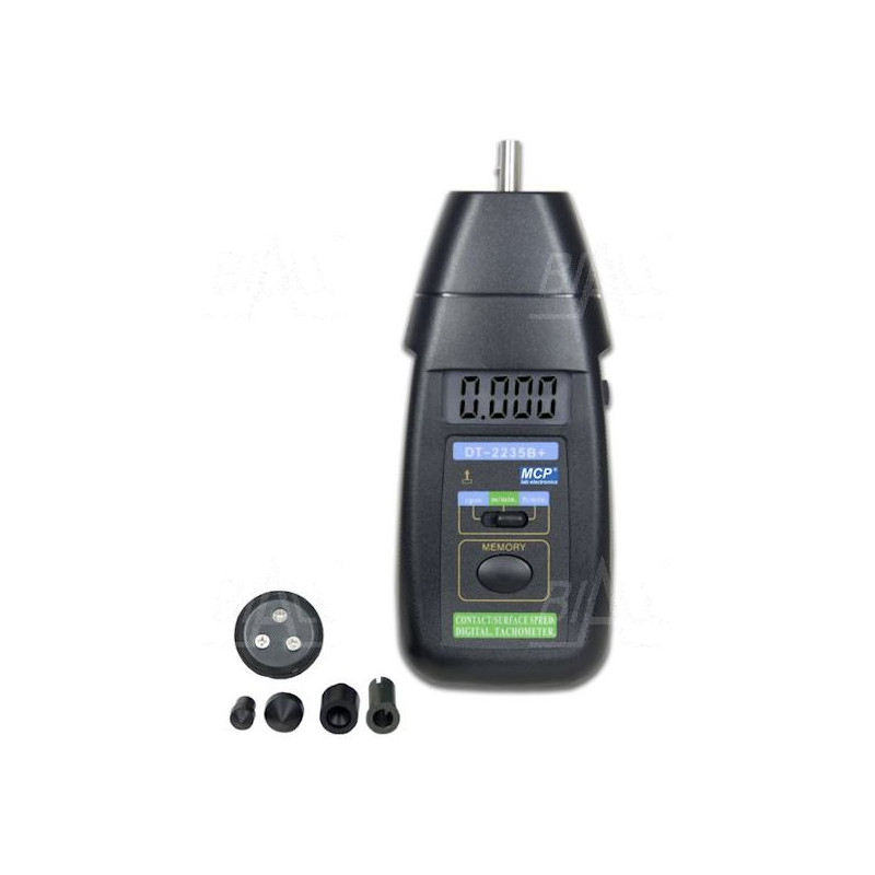 Przyrząd do pomiaru prędkości obrotowej i liniowej metodą dotykową . Tachometr charakteryzuje się wysoką dokładnością 0.05% + 1c oraz szerokim zakresem pomiaru prędkości obrotowej 19999 (obr/min) liniowej 1999.9 (m/min) Wyposażony jest w funkcje pamięci wartości maksymalnej MAX , minimalnej MIN, ostatniej zmierzonej oraz podświetlany ekran LCD 5 cyfr umożliwiający odczyt w każdych warunkach.