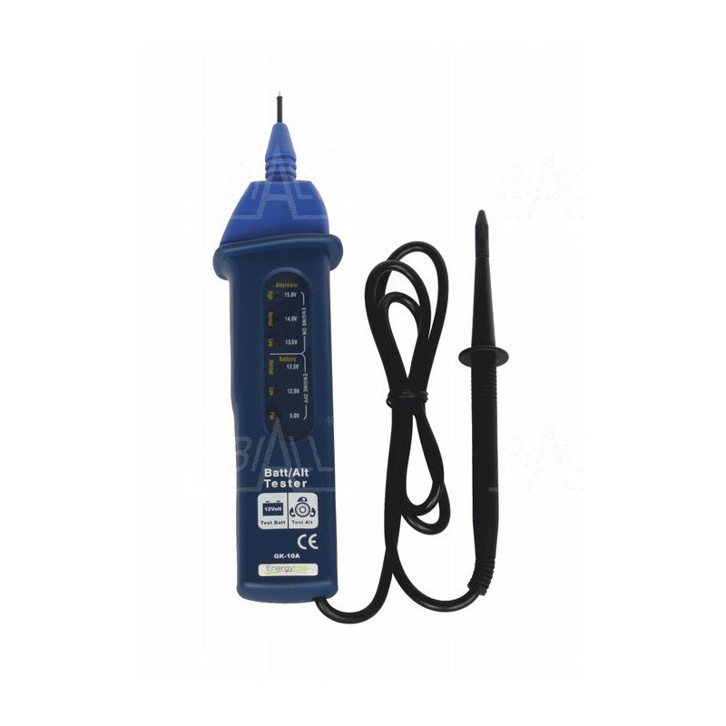 Tester GK10A umożliwia wstępną diagnozę akumulatora i alternatora . Urządzenie wyposażone jest w diody LED, które informują użytkownika o poziomie napięcia występującego na zaciskach badanego akumulatora 5V / 12V / 12.5V / 13.5V / 14V / 15V .