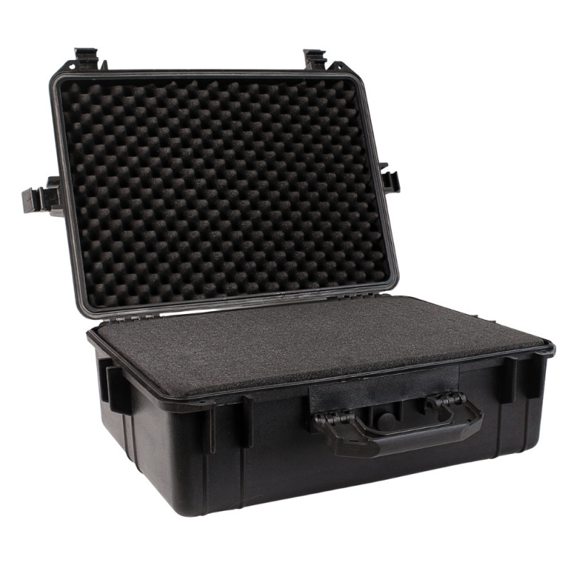 Hermetyczna walizka ochronna z elastycznego polipropylenu (PP) zapewnia skuteczną izolację przed wilgocią i pyłem zgodnie z klasą szczelności IP55, chroniąc sprzęt w wymagających warunkach transportu i magazynowania. Zastosowany system uszczelniający oraz zawór dekompresyjny umożliwiają bezpieczny transport lotniczy i łatwe otwieranie po zmianach ciśnienia. Wnętrze z wstępnie naciętym wkładem gąbkowym pozwala na precyzyjne dopasowanie i stabilizację przewożonego wyposażenia.