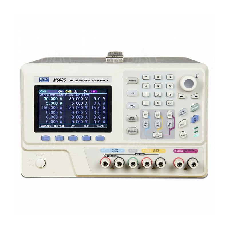 Zasilacz lab programowalny M5005 DC 2x 30V/5A, 1x 2,5V/3,3V/5V/3A rozdz.1mV/1mA MCP
